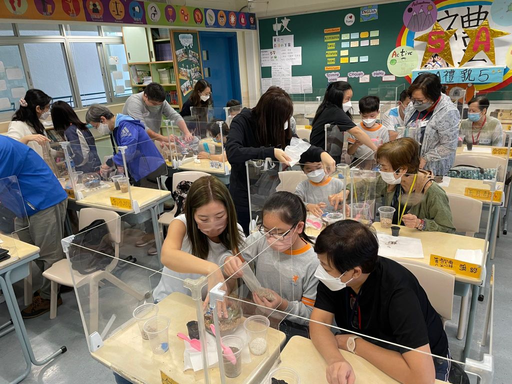 植物與乾花藝術創作@香港同學會小學X東華三院胡其廉長者鄰舍中心 Type: art-workshop-team-building-event、企業環保藝術活動 主題創作玻璃圓球多肉植物盆景 乾花小花束製作體驗 玻璃小圓球多肉植物盆景 乾花石膏香薰牌製作體驗 相關